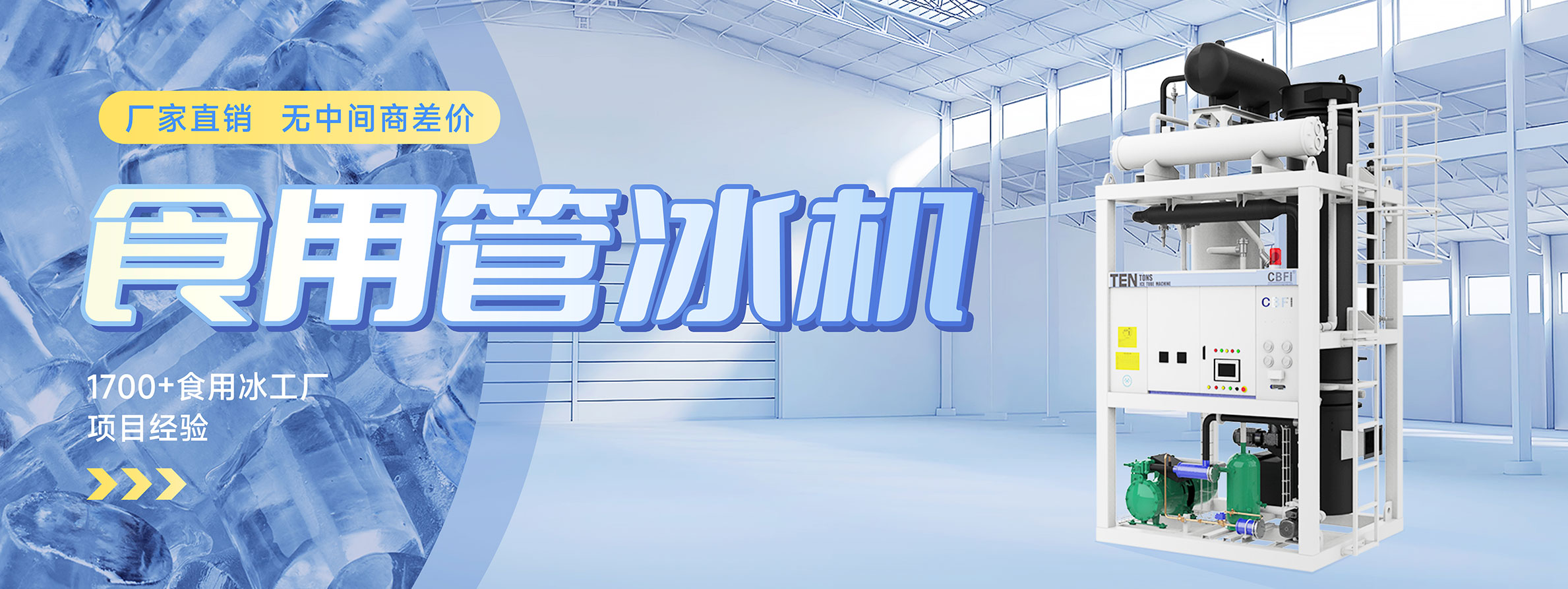 廣州冰泉制冷設備有限責任公司(商標CBFI),大型氟制冷制冰設備行業開拓者,是一家立足國內、面向全球,集大型食用制冰設備、大型工業制冰設備、高端商用制冰機、成套制冰系統的研發、設計、制造、銷售、售后服務于一體的創新創業型高新技術企業,是大型冰廠和冷庫工程解決方案服務商。